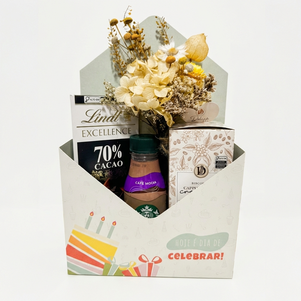 Desenvolvemos pacotes exclusivos de acordo com o volume, a ocasião e a necessidade da sua empresa, sempre mantendo o padrão de qualidade da Celebre Floripa: produtos selecionados, acabamento sofisticado, experiência de abertura encantadora e entrega cuidadosa.