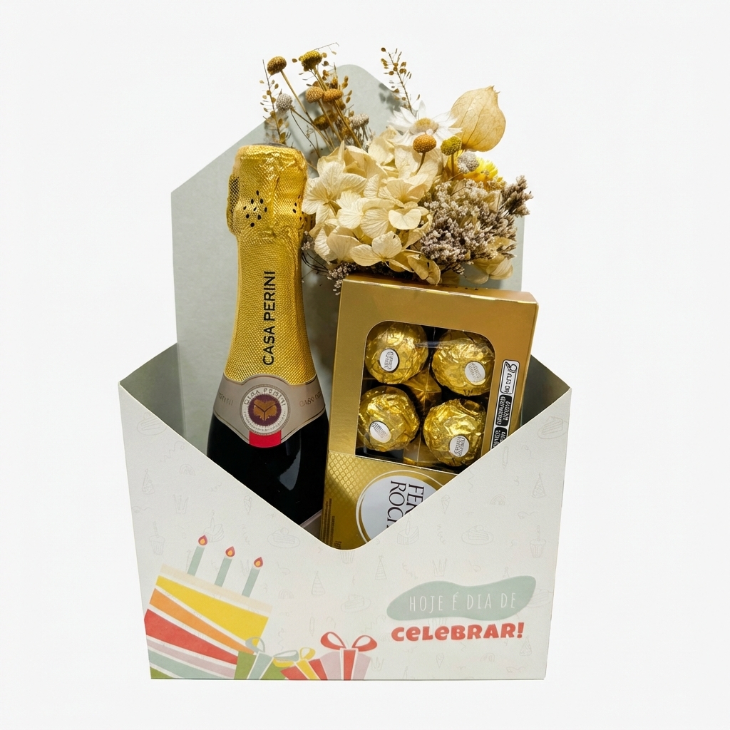 Desenvolvemos pacotes exclusivos de acordo com o volume, a ocasião e a necessidade da sua empresa, sempre mantendo o padrão de qualidade da Celebre Floripa: produtos selecionados, acabamento sofisticado, experiência de abertura encantadora e entrega cuidadosa.